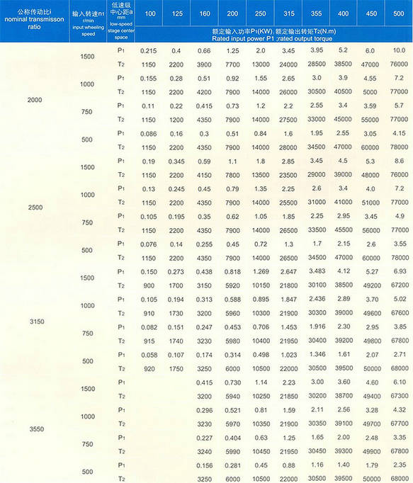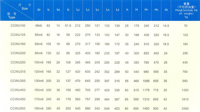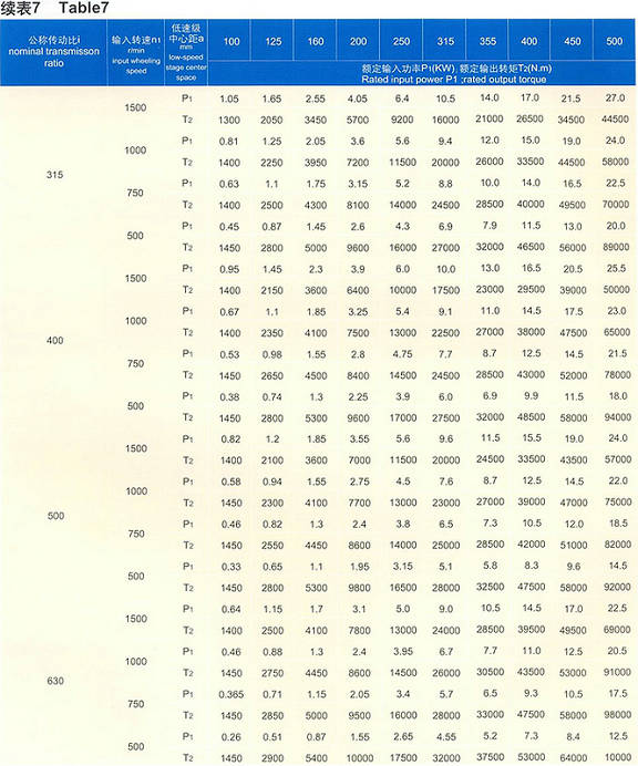 1、CCWU、CCWO及CCWS減速器的額定輸入功率P1及輸出轉短T2應符合表7的規定